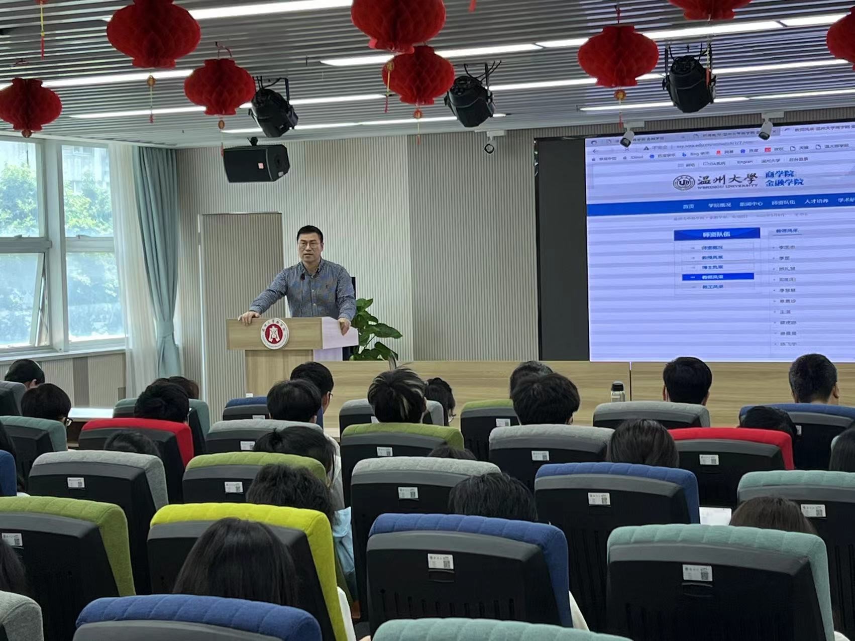 毛华配老师端庄风雅,分享了金融工程专业的考研情况,他劝导员工要思考自己的人生目标,扩展自己的学习范围,新时代青年的志向要高远,而不是迷茫地去考虑转专业的问题。随之,毛老师也风趣的介绍了自己关于心理学方面的研究,使现场的气氛变得活跃,他最后积极鼓励同学们去拓展自己的知识的广度和深度。