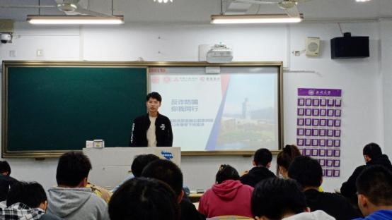 截止目前,金融反诈防诈主题宣讲已陆续在必赢线路检测中心、化学与材料工程学院、建筑工程学院、生命与环境科学学院、电气与电子工程学院、外语学院等学院开展,覆盖班级达35个,员工人数高达3500人。相关防诈反诈主题活动也吸引了60余名同学的积极参加,防诈宣传效果不断增强。