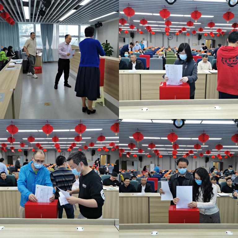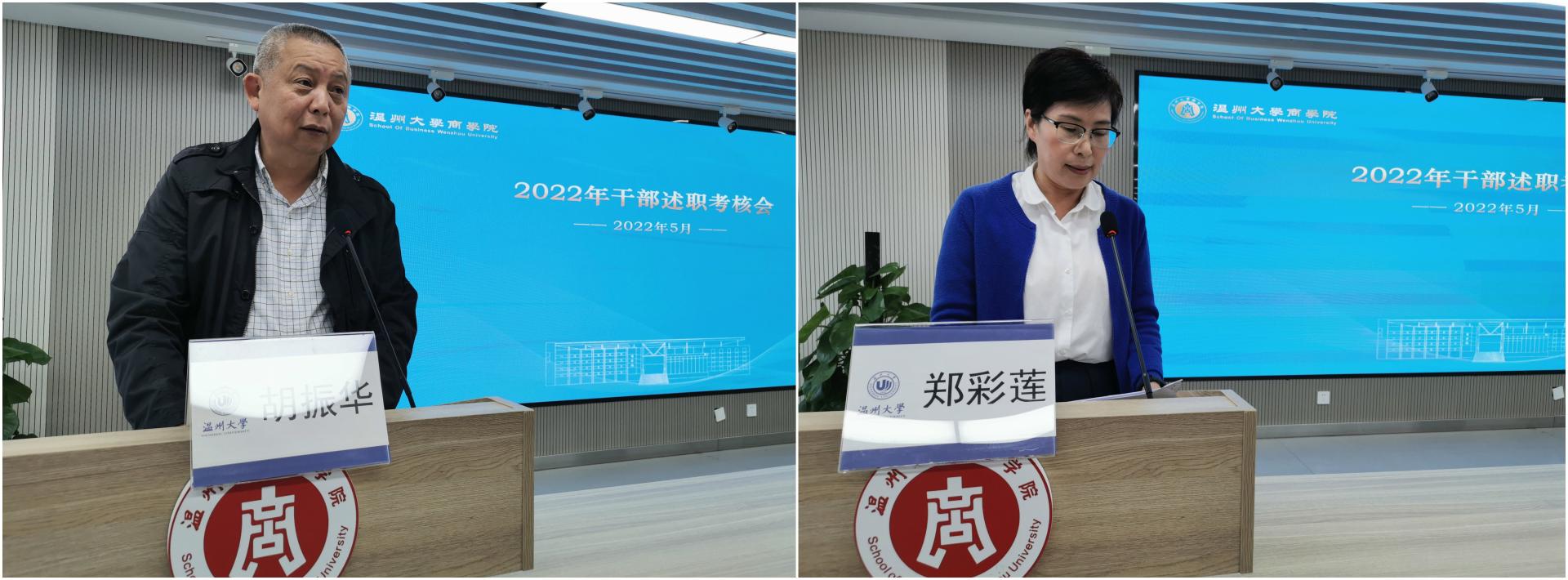 学习会前进行了2022年干部述职考核会,学院经理胡振华、党委书记郑彩莲作现场述职,学院科级以上干部考核材料已提前公示,全体教职工进行民主测评并投票。