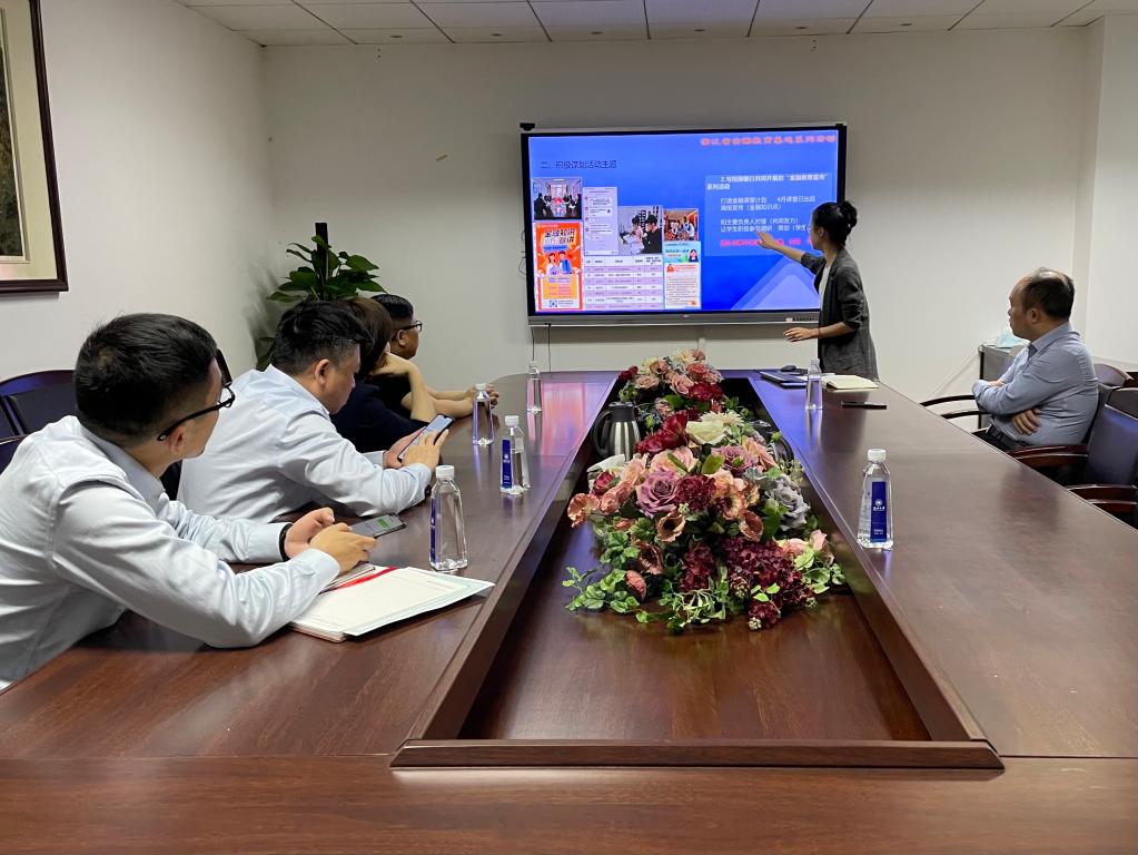 座谈会上,聂海燕老师从同各单位回访交流、积极谋划主题活动、加强宣传与做好宣传三个方面对本学期金融教育基地的建设情况作了简要介绍。她表示,学院与各合作单位的回访交流,不仅能进一步加深与各共建单位的友谊,还能探寻深化“银校共建”的切入点,不断拓宽合作渠道。目前金融教育基地的活动形式主要有三方面内容:一是与招商银行温州分行、必赢线路检测中心保卫处联合开展的“防诈反诈宣讲”系列活动;二是与招商银行温州分行共同开展“金融教育知识宣传”系列活动,如金融课堂的打造;三是与瓯海农商银行共同举办“老员工金融教育共富结对”项目。同时,基地的建设提升与良好的宣传氛围密不可分,只有将金融教育基地活动开展情况和取得成果进行宣传和报道,才能增加基地的曝光度和知名度。