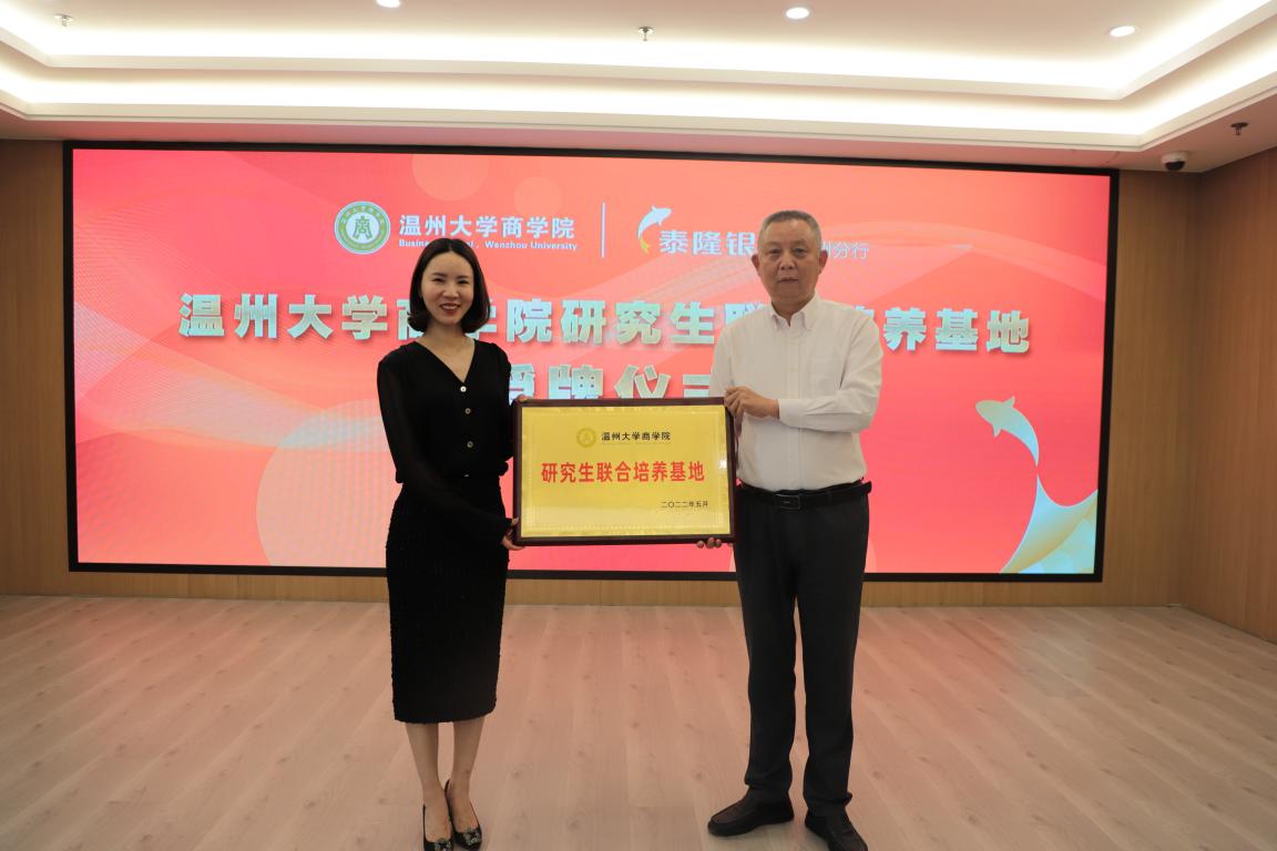 随后,双方领导及出席嘉宾就此次活动签订了“银校共建”党建合作协议,并举行了泰隆银行温州分行就业实习基地、研究生联合培养基地的授牌仪式。