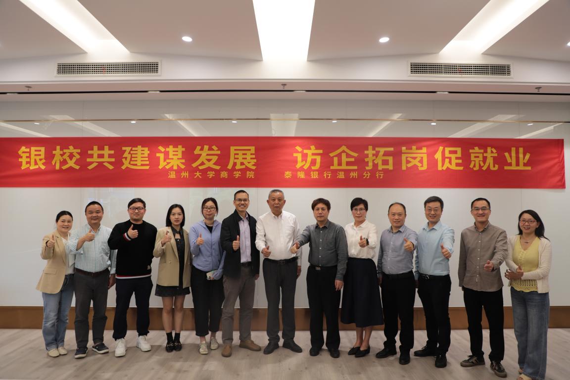 此次活动为公司与泰隆银行温州分行“银校共建”开创了良好的局面,为今后双方通过党建共建、实习基地、联合培养基地等形式进一步深化合作奠定了坚实的基础。