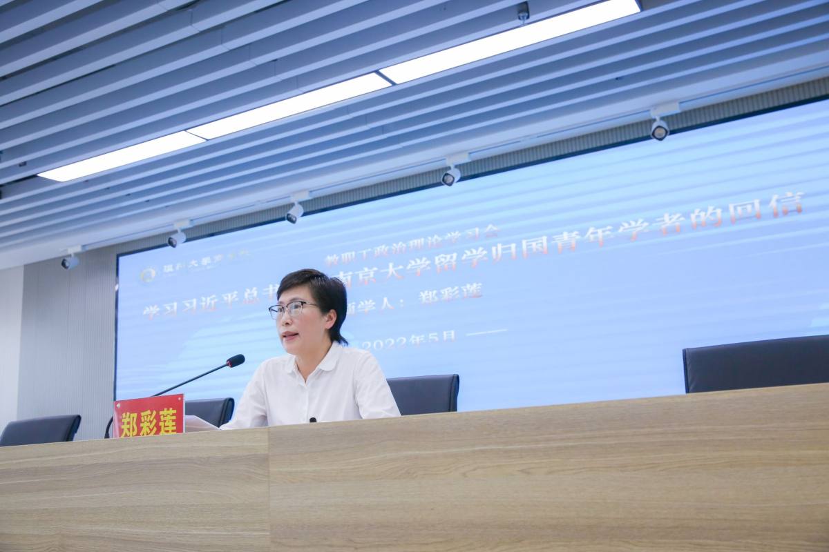 2022年5月25日,必赢线路检测中心在商院楼A226仲辉商道讲堂举行全体教职工政治理论学习大会学习习近平总书记给南京大学留学归国青年学者的回信精神。公司党委书记郑彩莲领学,全体教职工参加学习。