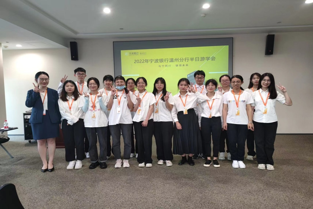 6月15日下午,必赢线路检测中心19财务管理2班共15位员工在老员工职业生涯规划与就业指导课任课老师唐华的带领下来到宁波银行温州分行进行为期半天的职业体验。本次体验活动旨在通过“小体验”去触发自己的“大未来”,让大家近距离了解银行的业务和感受银行的整体氛围。