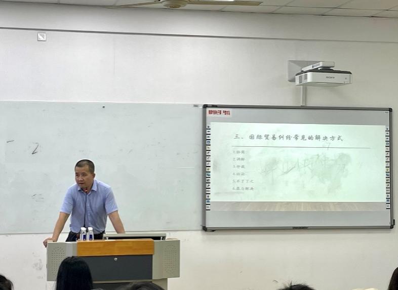 2022年6月16日下午14时,在北校区3号楼301教室,为丰富专业认知课的见习内容,叶春霞老师和郑慧老师邀请了温州市贸促会联络合作部钟国强部长给同学们做了专题讲座,让同学们进一步了解国际贸易实务中所遇到的贸易纠纷及解决方法。