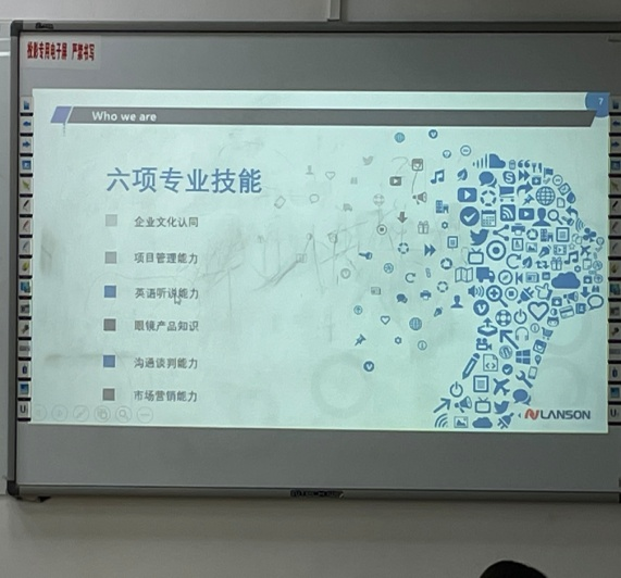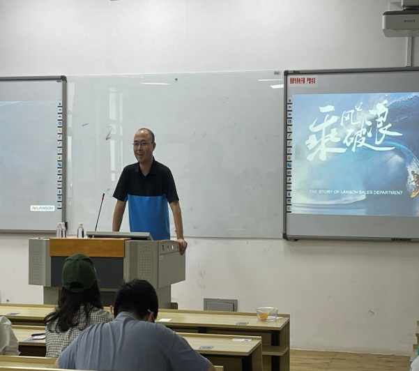 第二专题是外贸业务员的成长技能与发展方向。张健总监以自己的工作为例,详细地介绍了一个业务员的日常主要工作内容,业务范围,然后也向我们介绍了未来外贸业务发展趋势,同时也对公司外贸人才提出发展目标和能力要求,这也是对我们国贸专业员工的要求,给我们树立了明确的进步目标。