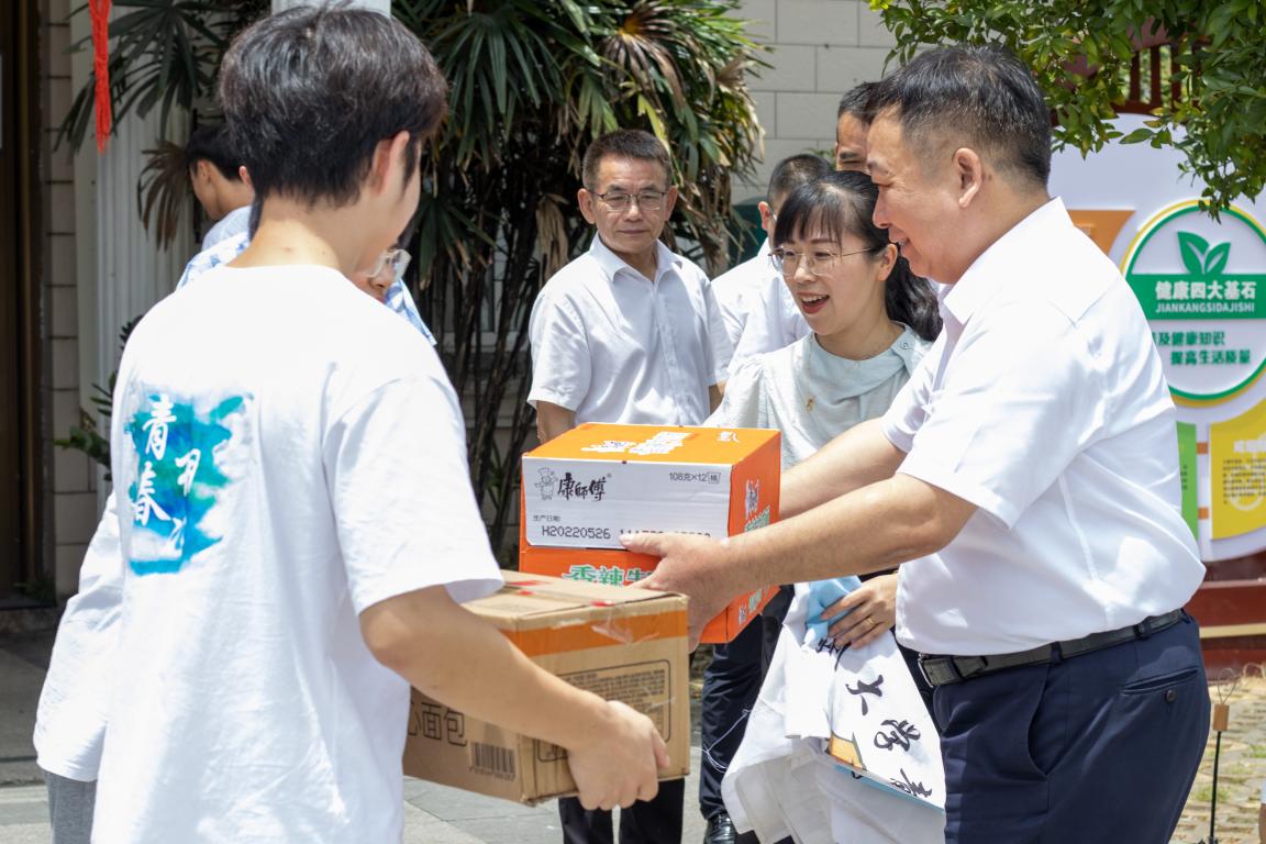 最后,赵敏董事长与和校团委书记易招娣一同为暑期社会实践队送上慰问品。