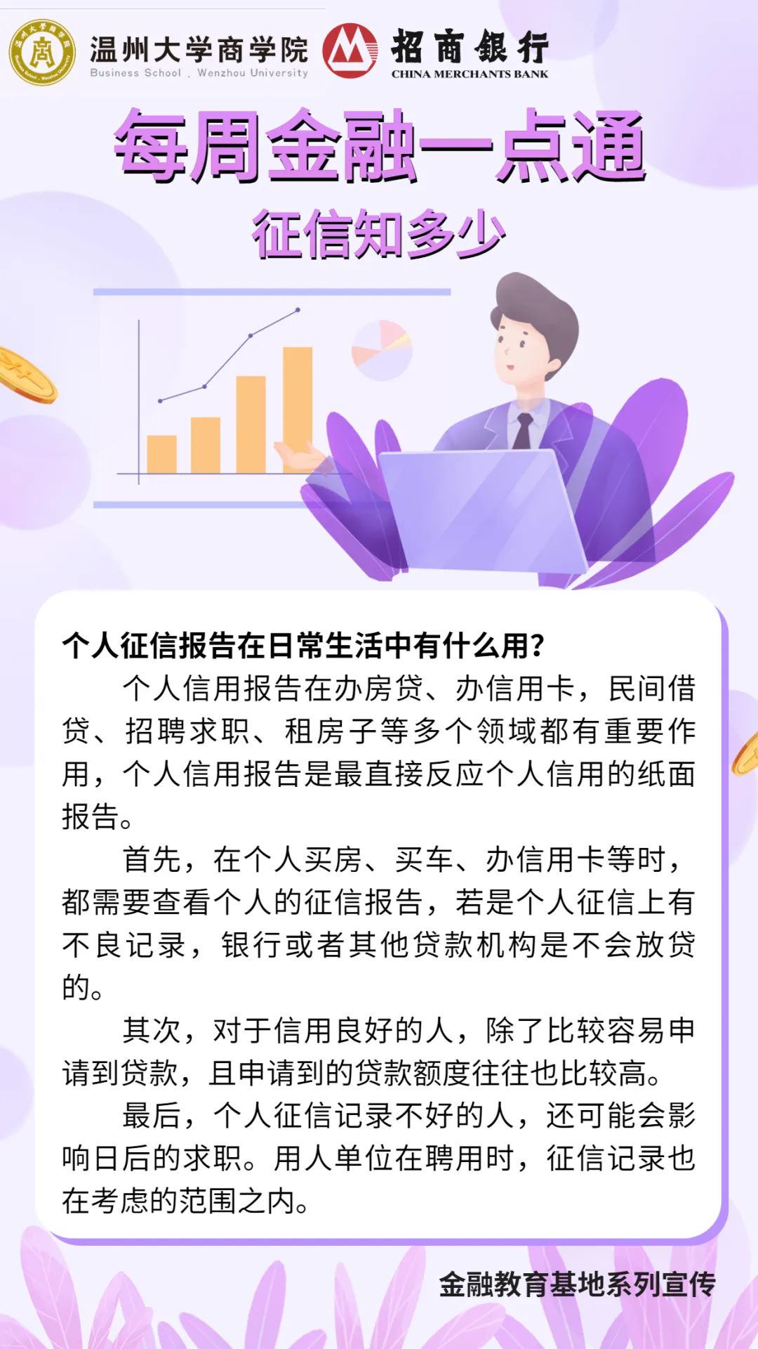 为了更进一步加强金融教育基地宣传特色,突出金融教育基地创建成果,必赢线路检测中心联合招商银行温州分行以防电信诈骗、银行卡知识、保险知识、断卡知识等主题为内容制作 “每周金融一点通” 金融知识宣传海报,作为金融教育基地的特色宣传活动。宣传海报除在必赢线路检测中心官方微信公众号以固定的形式开展宣传外,同时作为金融宣讲团成员进班级开展金融宣讲的辅助手段,并结合进寝室、食堂、社区、街道等场所开展多点宣传。2季度,金融宣传教育基地共制作并发布8期宣传海报,起到了广泛的线上宣传效果。