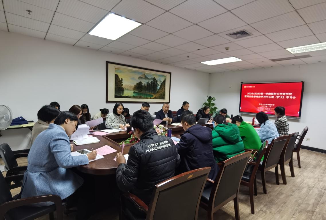 2022年12月2日上午,2022-2023学年第一学期第四次党委理论学习中心组(扩大)学习会在学院A222会议室顺利召开。院领导班子成员、党委委员、纪委委员、支部书记以及各科室负责人参会,会议由党委书记李密主持。