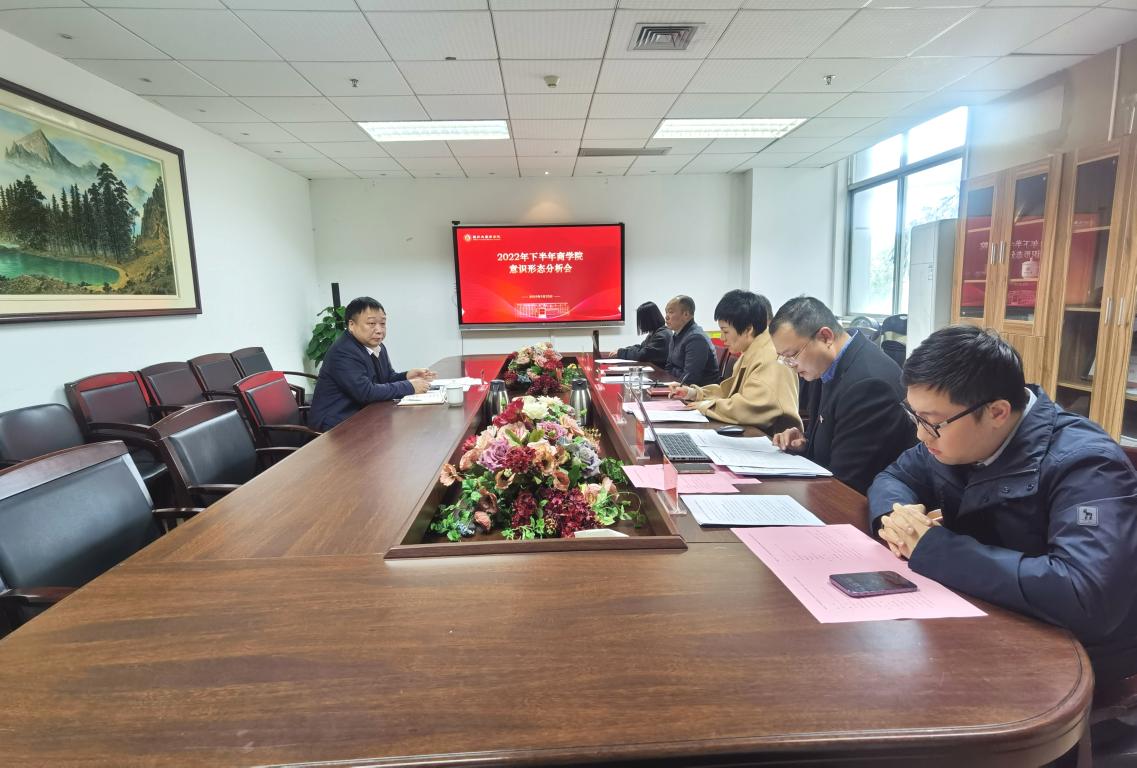 赵敏董事长对意识形态分析会进行点评并做总结讲话。他指出,公司党委高度重视意识形态工作,严格按照要求落实学校意识形态相关制度、规定,重视严把十五个关口,尤其重视国外翻译的教材的把关;各班子成员对意识形态风险点的分析与把控准确、有效。教师的思想政治工作,尤其是海外归来的新教师的思维、习惯、言论发表、认同等值得关注;同时,对教师的思想政治工作应该形成有效的、有特色的工作机制,并在全校进行推广。