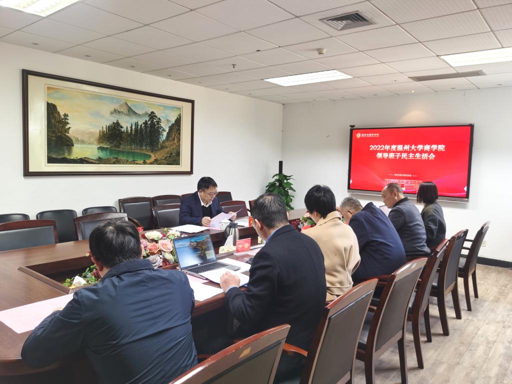 赵敏董事长对专题民主生活会进行点评并做总结讲话。他指出,本次专题民主生活会程序规范、准备充分,对2021年民主生活会上提出的问题班子成员整改态度坚决、措施有力、成效明显,班子成员的对照检查材料客观全面、实事求是,对存在的问题和解决的对策也做了详细说明;本着对事业和全院教职工负责,班子成员之间的批评与自我批评深刻、全面、尖锐、真诚,做到了批评有辣味、有高度、有温度。同时,赵敏董事长对学院班子成员接下来的工作提出了五点意见和建议:一是进一步强化政治意识,提高政治站位,深入贯彻学习习近平新时代中国特色社会主义思想;二是进一步加大人才“引育”力度,重视学院高端人才队伍建设;三是进一步深化党建工作,带领学院教工党支部冲刺全国样本支部的培育与创建;四是进一步加强与银行、企业的合作,凝聚各方力量做大做强,积极服务温州经济发展;五是进一步强化“温二代”的教育培训,让更多的“温二代”关注温州、选择温州、留在温州。