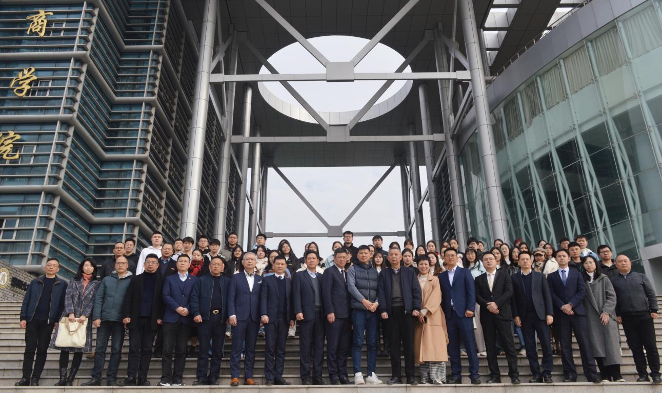与会的院领导、校外导师和2022级金融专硕研究生合影留念。