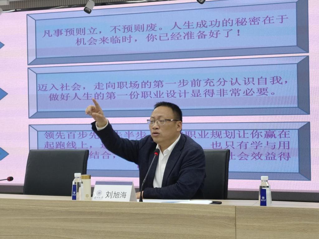 紧接着,刘旭海董事长为20财务管理系全体员工带来精彩讲座。刘董事长从财务人耳熟能详的“资产负债表”切入,围绕如何选择会计方向、如何提升自己的能力等问题,详解会计职业定位及发展规划。他指出,员工应注重提升整体专业素养,以便更好地实现自身价值。