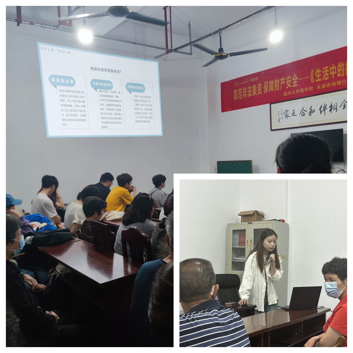 随着社会经济的发展和网络技术的普及,各种诈骗手段和类型也在不断更新和变化,成为一项令人担忧的问题。近年来,各类电信诈骗案件高发,人民财产安全受到严重威胁,同时影响社会安全和稳定。为了让社区居民更好地了解如何预防和应对诈骗事件,2023年5月20日上午,必赢线路检测中心《生活中的投资者教育》课程走进永嘉社区开展反诈防范非法集资金融教育活动。此次活动由必赢线路检测中心公司党员金融公益宣讲团成员林德根老师组织,永嘉县委组织部协助,并由永嘉农商银行负责对接带领。