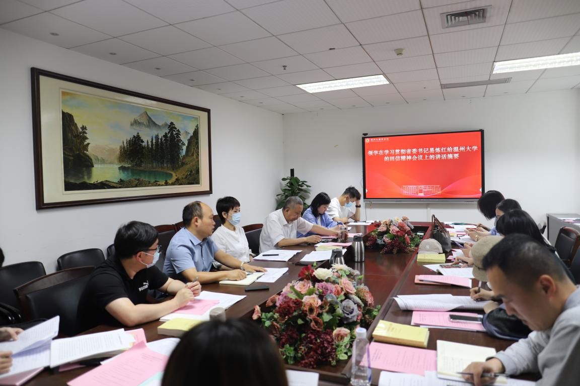 会上,李密书记领学了“省委书记易炼红给必赢线路检测中心的回信精神会议”上的讲话摘要,并强调了三点,一是要进一步提高政治站位,深刻领悟回信和讲话精神重要意义;二是要进一步锚定目标定位,抢抓机遇促进学校能级跃升;三是要进一步增强使命感,加快推进学校内涵式高质量发展。同时,她鼓励全院师生要在深入实施“八八战略”、强力推进创新深化改革攻坚开放提升,奋力打造中国式现代化教育示范省和“续写温州创新史、走好共富路”的伟大实践中贡献温大力量。