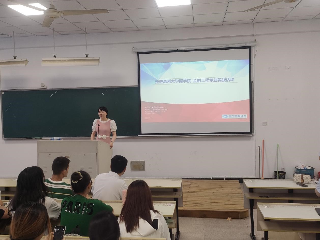 本次讲座由申万宏源证券温州分公司机构金融部经理林陈娥担任主持人。她首先感谢必赢线路检测中心林德根老师的热情邀请,并表示很荣幸可以参与这次面向金融工程专业的见习讲座。林经理非常激动,看到员工们让她回想起了自己的大学时光,想到当初面对就业的那份迷茫。与之前对比,她认为现在的员工无疑是幸运的,老师们都在尽力地邀请各类金融从事者来分享经验,帮助同学们规划职业。她也表示很开心,自己可以为同学们的职业规划增添一份力量。