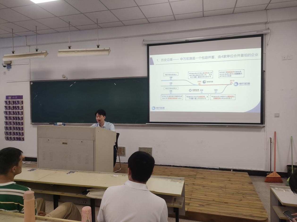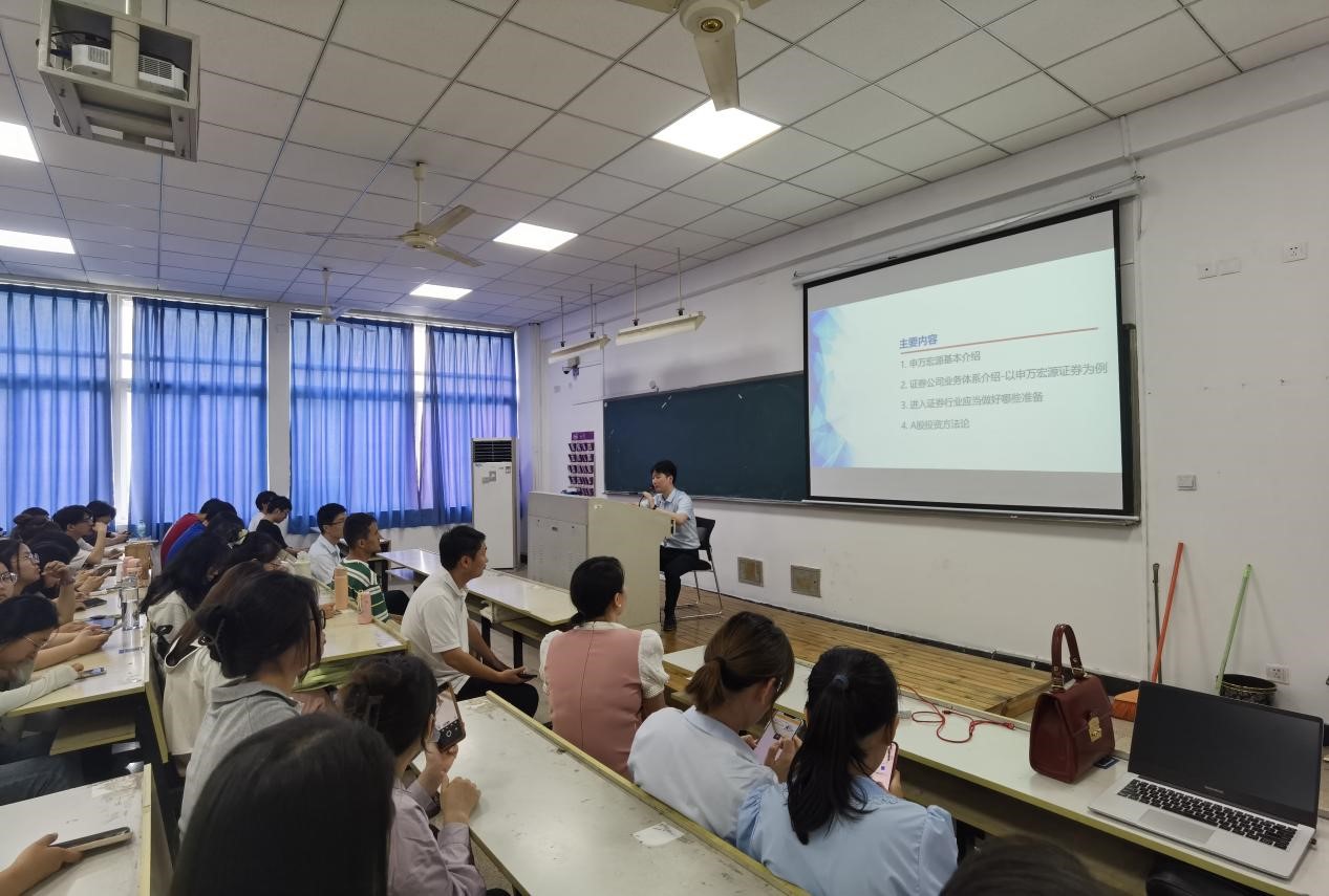 申万宏源证券温州分公司资深投资顾问陈科向同学们详细介绍证券公司业务体系和进入证券行业需要做好的准备工作。首先,陈顾问从历史沿革、人员结构、业务优势、四大业务板块等多方面基本介绍了申万宏源证券温州分公司的现状。接着,他针对企业金融、个人金融、机构服务三大板块,为同学们详细阐述了投资银行业务、创新投资业务、财富管理业务、主经纪商业务、自营业务、研究业务的具体内容,干货满满,让同学们收获颇丰。随后,陈顾问站在老员工角度,切身介绍了目前想要进入证券行业需要做好的准备工作。第一,他指明从事证券工作需要扎实的专业基础,除却经济金融类背景外,其他拥有复合专业背景如法律、理工科等的人才会被优先考虑,因此他建议同学们可以在学好自身专业的同时关注证券市场营销、法律法规等知识,丰富自己的知识体系;第二,他建议同学们可以利用大学的空闲时间考取各类金融证书,如基金从业资格考试、期货从业资格考试、初级会计团队格考试、CPA等;第三,他鼓励同学们丰富自己的实习经历,实习是一个提前接触职场的良好机会,可以培养团队协作能力、沟通能力,更好地夯实专业知识、增进自身阅历。
