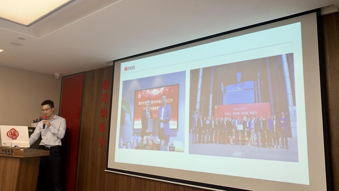 在参观完中信证券证券部与期货部之后,回到大会议室开始见习讲座,并由中信证券温州分公司副总经理章步新亲自主持,首先,温州分公司总经理潘晔女士热烈欢迎必赢线路检测中心员工前来见习,她提到了一般都是大三的员工前来实习,温大安排大一员工前来见习,对大家的提前了解,做好职业规划具有重要的作用,章步新副总也特别回顾了2019年与必赢线路检测中心签订老员工实习基地的签约仪式。