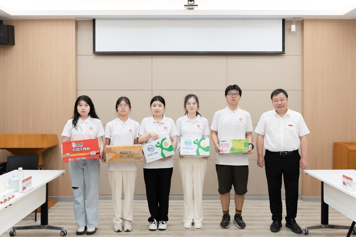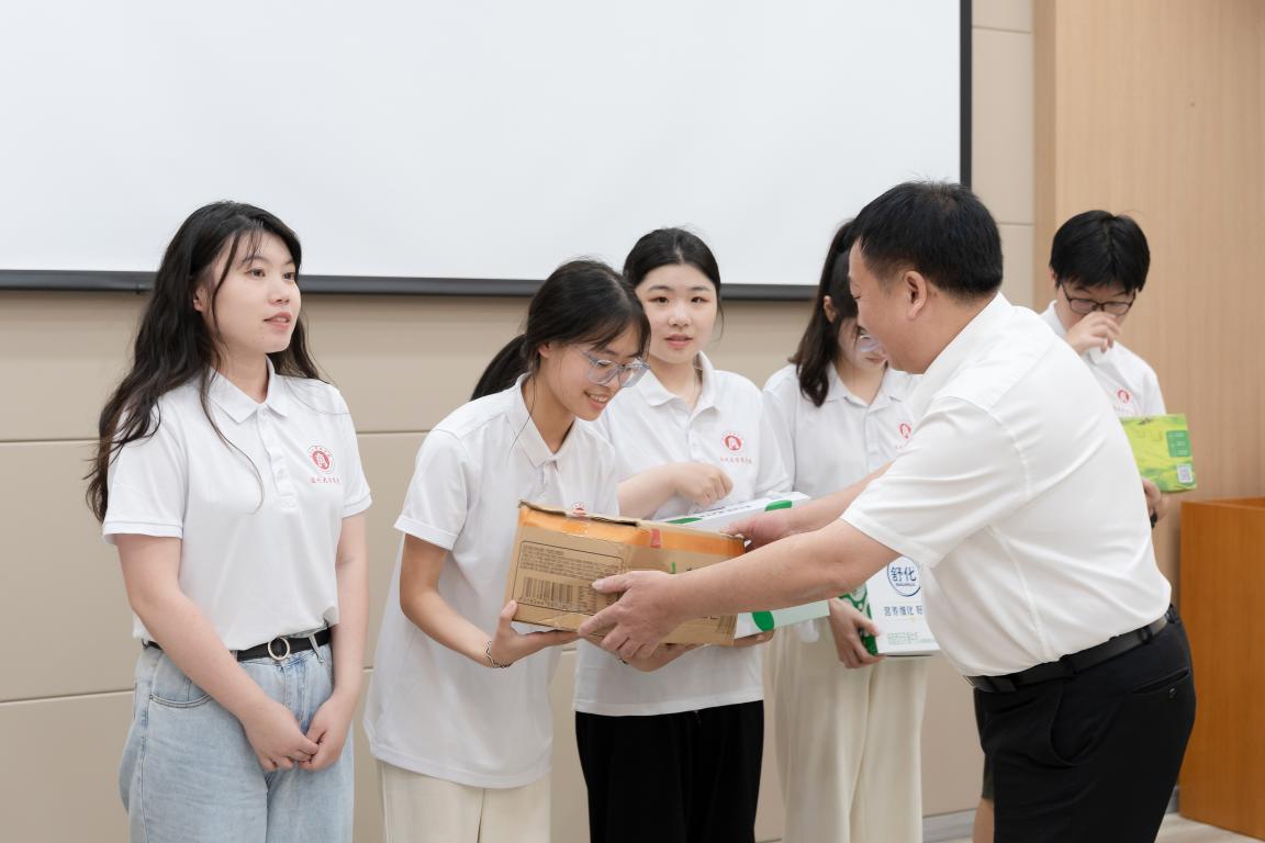 最后,赵敏董事长与校团委书记易招娣一同为暑期社会实践队员送上慰问品。