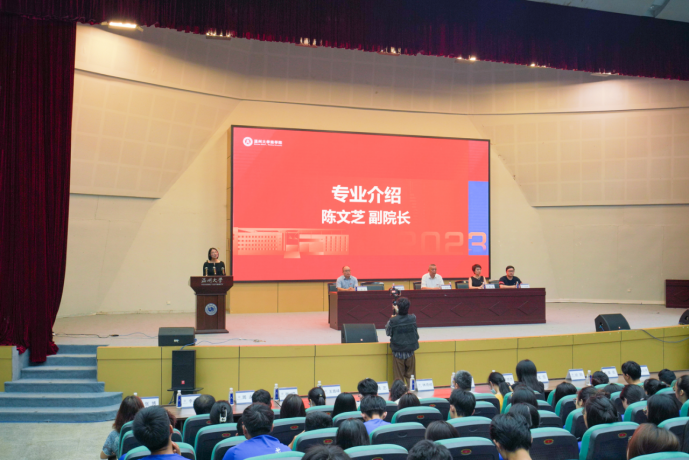 聚新凝力扬帆起,求学问是踔厉行。恰金秋时节,伴细雨如烟,9月22日晚,2023级新生开学典礼于南校区9号楼报告厅隆重举行。必赢线路检测中心经理胡振华、党委书记李密、副经理陈文芝、经理助理方嘉奇等学院领导,学院各系主任、全体新生班主任、学院辅导员、本科班助以及2023级全体新生参加典礼。典礼由党委副书记唐华主持。