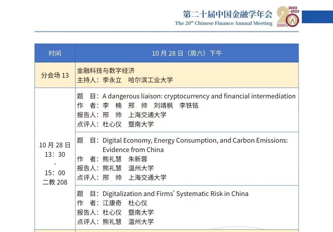 公司熊礼慧老师受邀出席年会,并在分论坛上汇报了论文《Digital Economy, Energy Consumption and Carbon Emissions Evidence from China》。