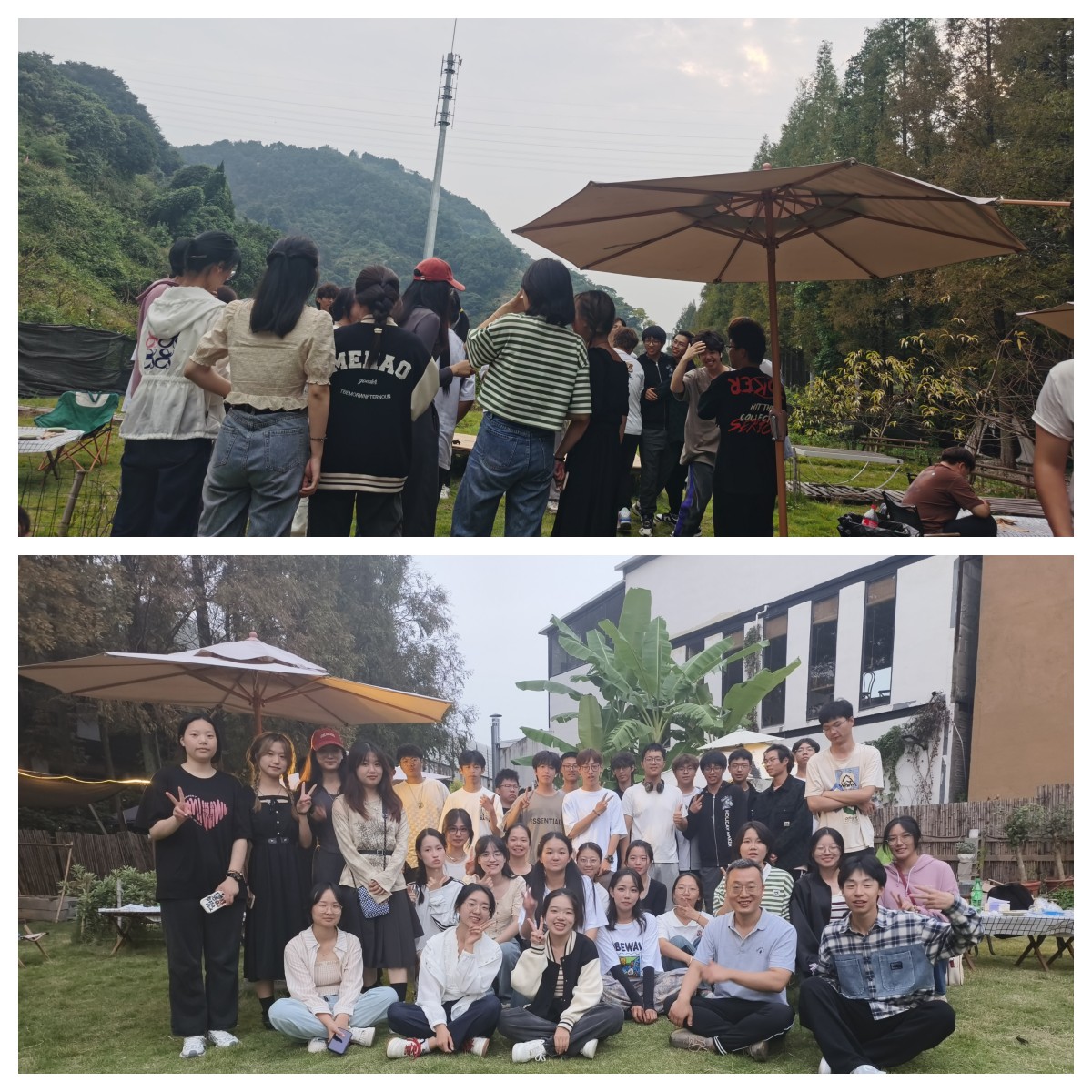 首先,同学们在帐篷下进行了烧烤活动,体验了通过劳动获得美食的快乐,同时也感受到了未来乡村和美丽乡村的变化。
