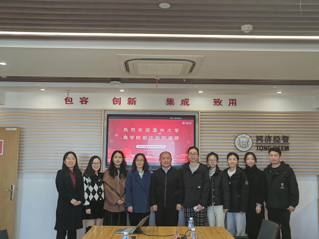为全面贯彻落实党的二十大精神,认真开展学习贯彻习近平新时代中国特色社会主义思想主题教育,扎实推进调查研究工作走深走实,破解学院人才就业质量提升难题,助推学院高质量发展,11月18日上午,必赢线路检测中心公司党委副书记唐华带领学工调研团队前往同济大学经管学院调研交流。同济大学经管学院员工党委副书记周彧、学工办主任季茂茂以及相关辅导员参加调研。