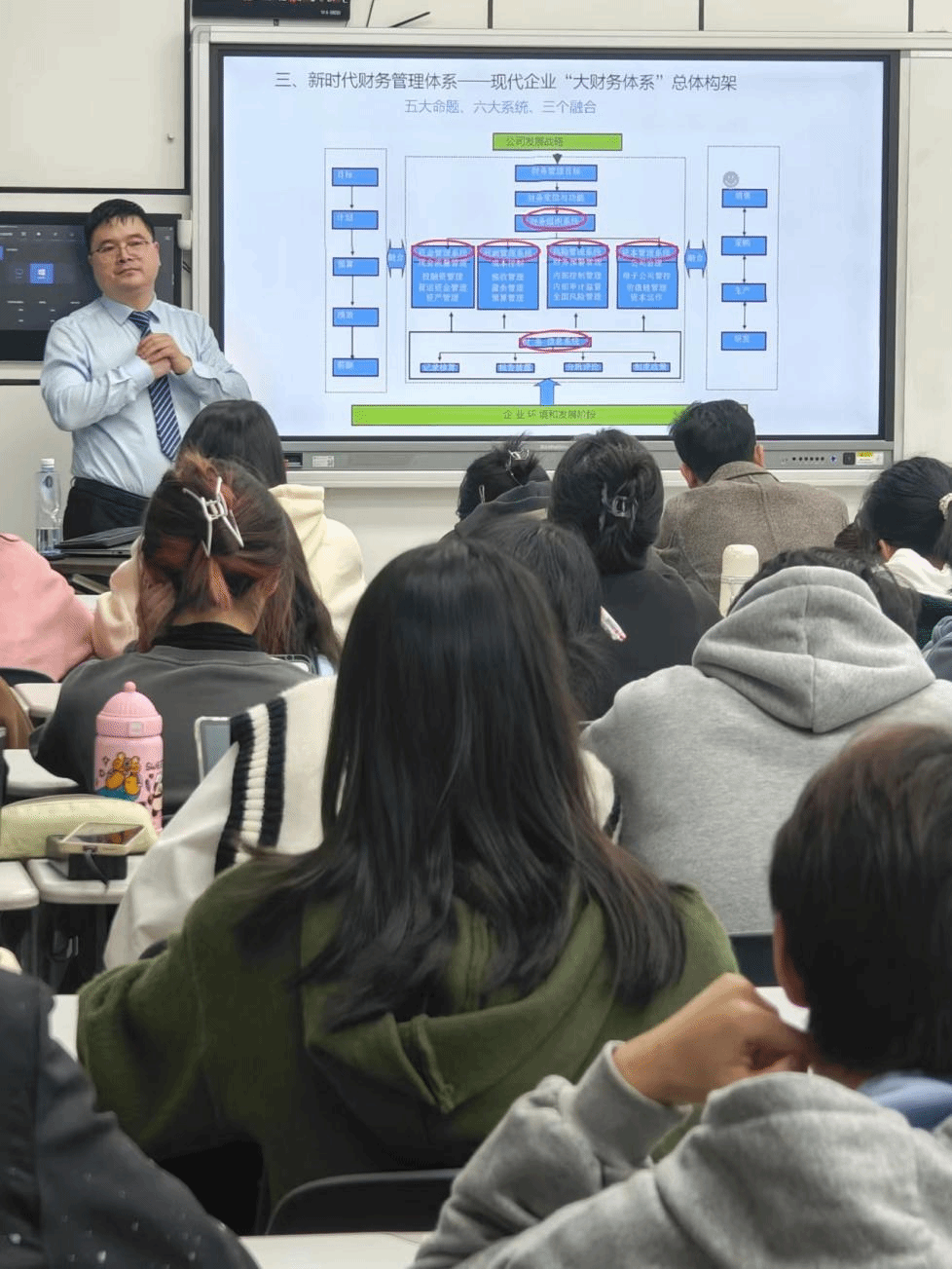 王光昌先生结合自身成长经历,强调韶华如驶,“百舸争流,奋楫者先”,冀望同学们以隙穴之窥的精神砥砺前行,用奋斗书写精彩人生。随后,王光昌先生详细地分析了当前的市场形势,着重点出了人工智能给会计行业的发展将带来巨大变革和影响,他指出,当代的员工应成为综合型会计才能避免被机器人所取代。紧接着,王光昌先生介绍了新时代财务管理体系和各业务系统财务业务一体化两方面,他希望同学们能够有意识地将所学的知识融合运用于实践中。王光昌先生提出,要掌握好底层逻辑,思维要与时俱进,提高分析问题能力和理解能力,将大学学习的知识转化为能力,增强自己的竞争力。