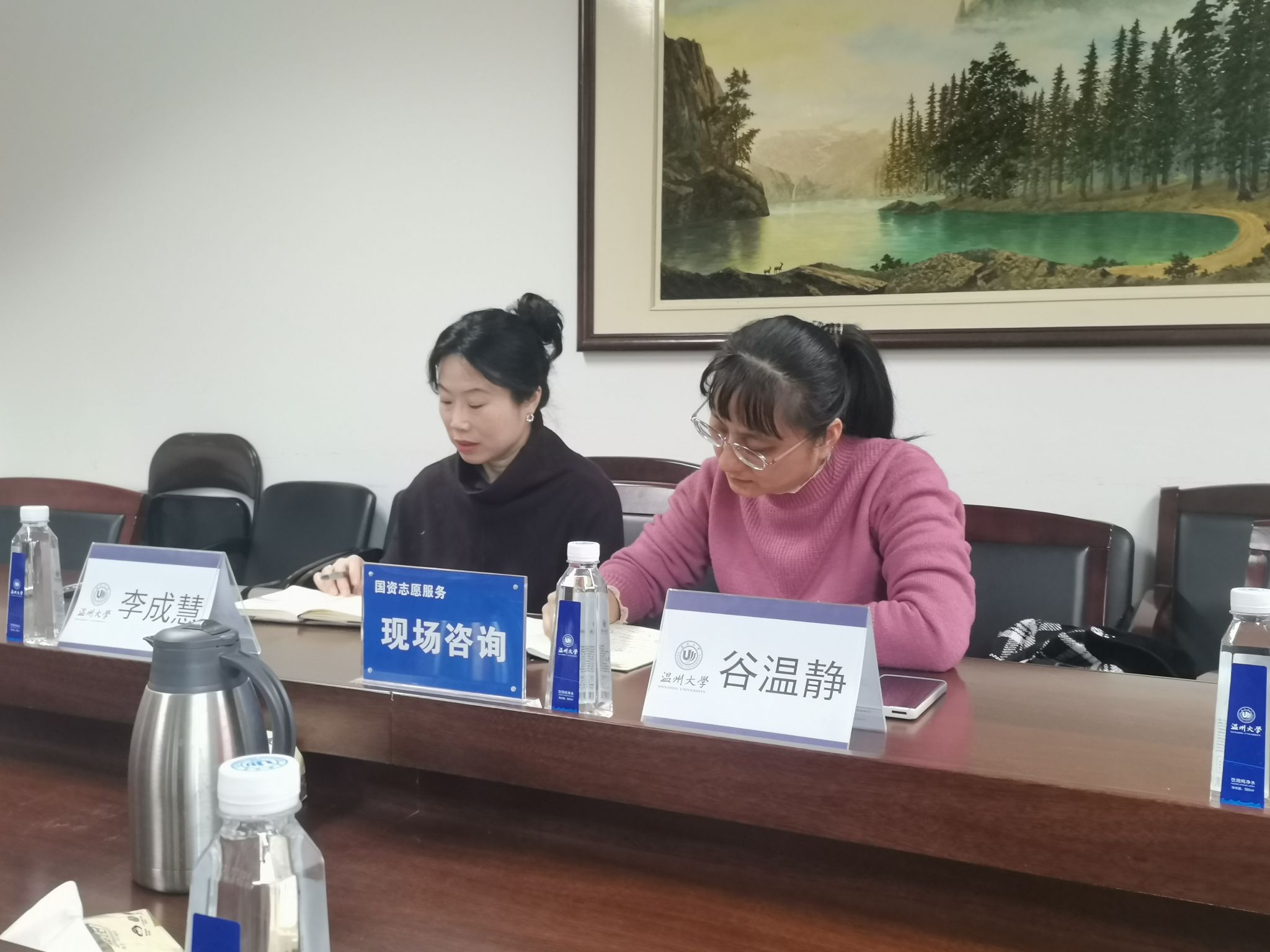 12月8日下午,国资处综合科科长李成慧、采购执行科科长谷温静到必赢线路检测中心作现场咨询,主要就老师们在资产采购、入库及后续管理等环节遇到的政策、流程、操作等问题答疑解惑。必赢线路检测中心分管副经理余向前在A222会议室接待了客人,对国资处为二级学院办实事、解难题,现场作咨询服务的举措表示赞赏和感谢。