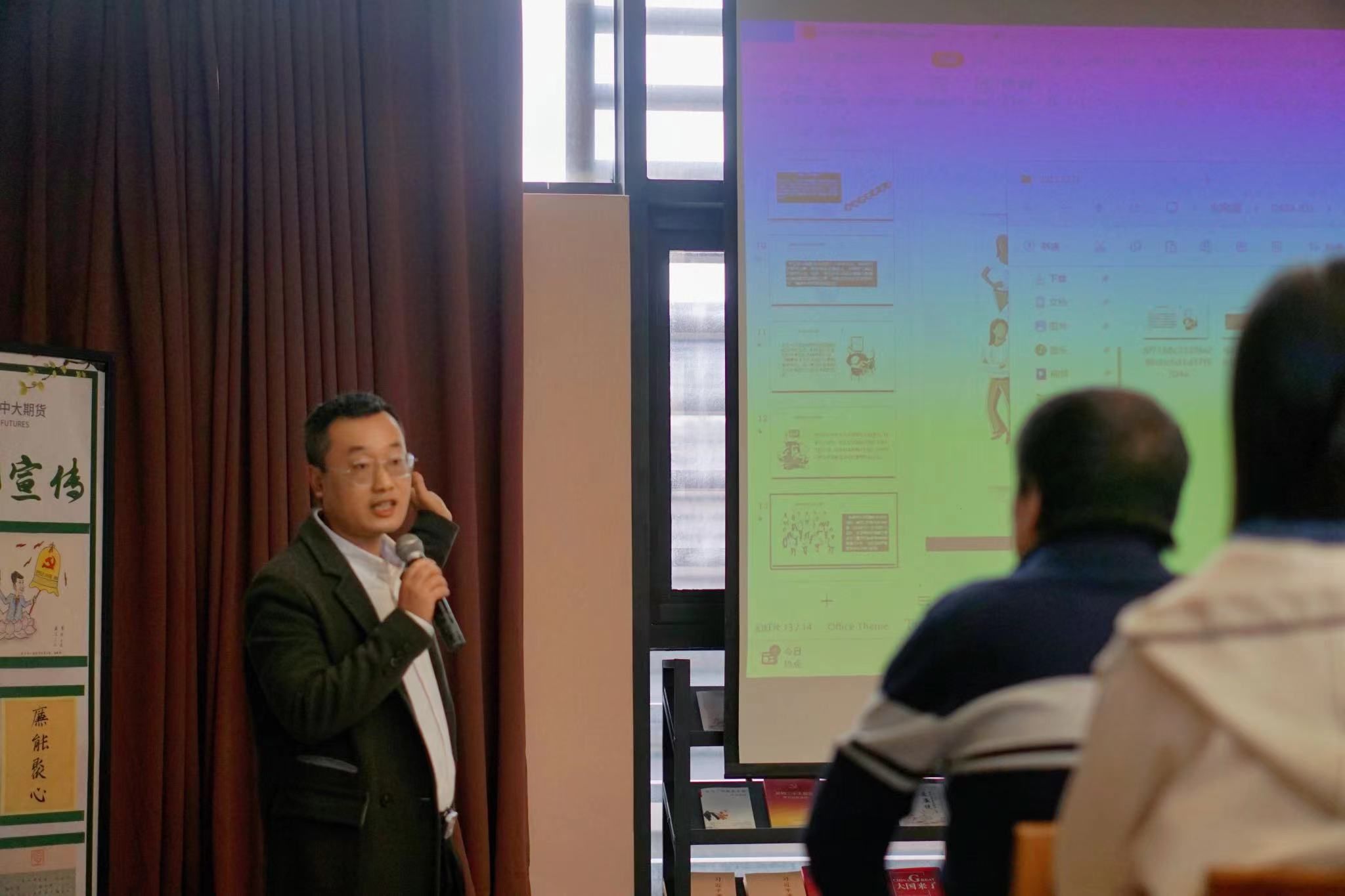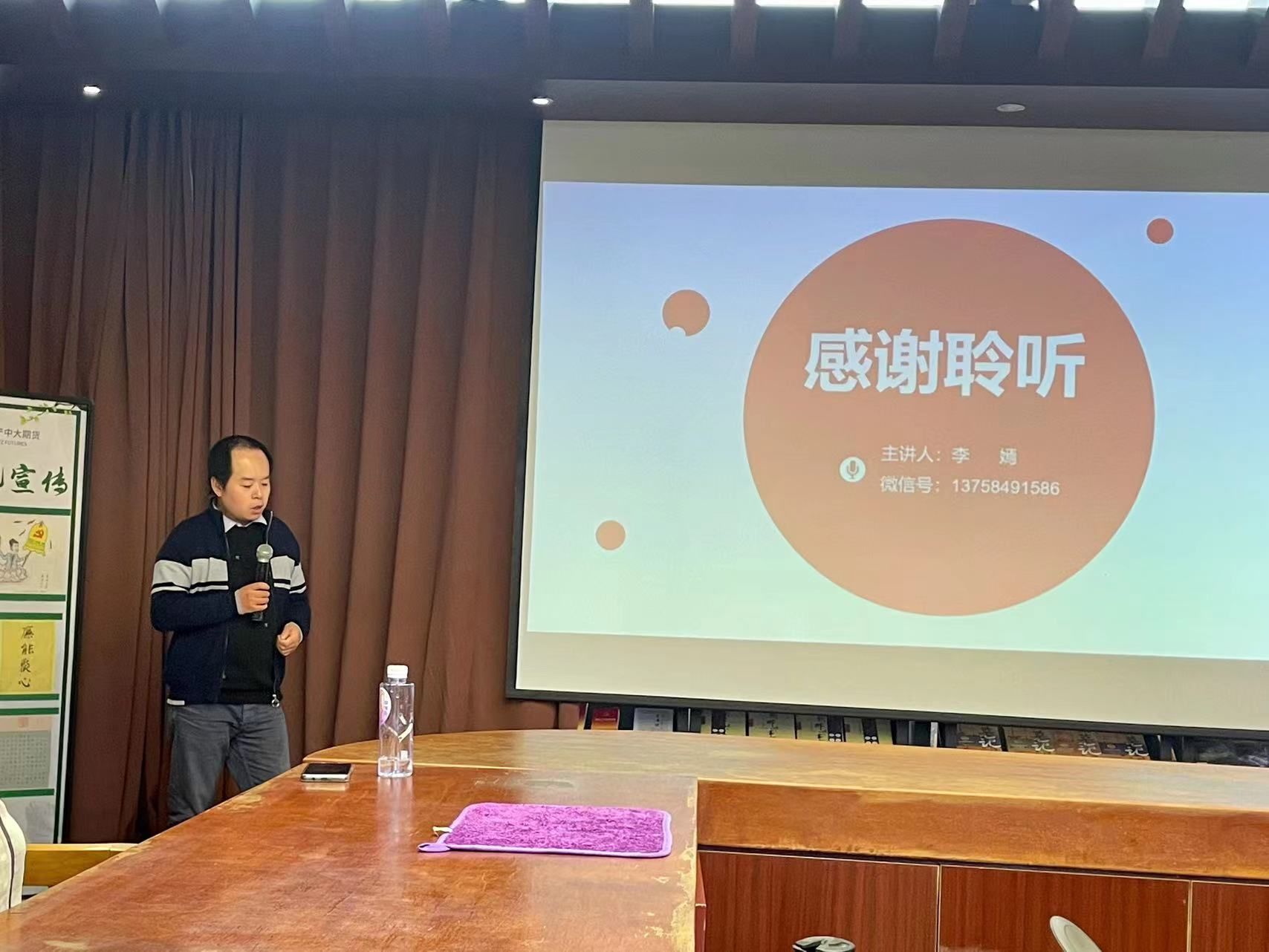 在看完宣传片之后,陈孝雨总经理为同学们讲述了他在期货行业工作的个人经理和温州营业部的发展。他于1998年毕业于浙江财经大学的证券专业,拥有五年证券行业的经验和十五年的期货行业的经验,是一名资深的金融从业者。他介绍了期货交易“一体两翼”。其中“一体”是指以经纪业务为基础,它确保了公司的稳定运营和收入来源。而“两翼”则分别指风险管理业务和财富管理业务,这两部分作为公司业务的拓展和发展引擎,助力公司实现多元化发展和收入增长。他表示,近年来由于温州的经济环境下滑,非常需要新兴人才重振雄风,希望能利用好金融作为工具为事业服务。他强调,随着中国经济的持续发展,期货市场将在国民经济中发挥越来越重要的作用。他鼓励员工们要努力学习金融知识,学习过程中要注意实践,提高自己的综合素质,为将来投身期货、证券市场做好充分准备。