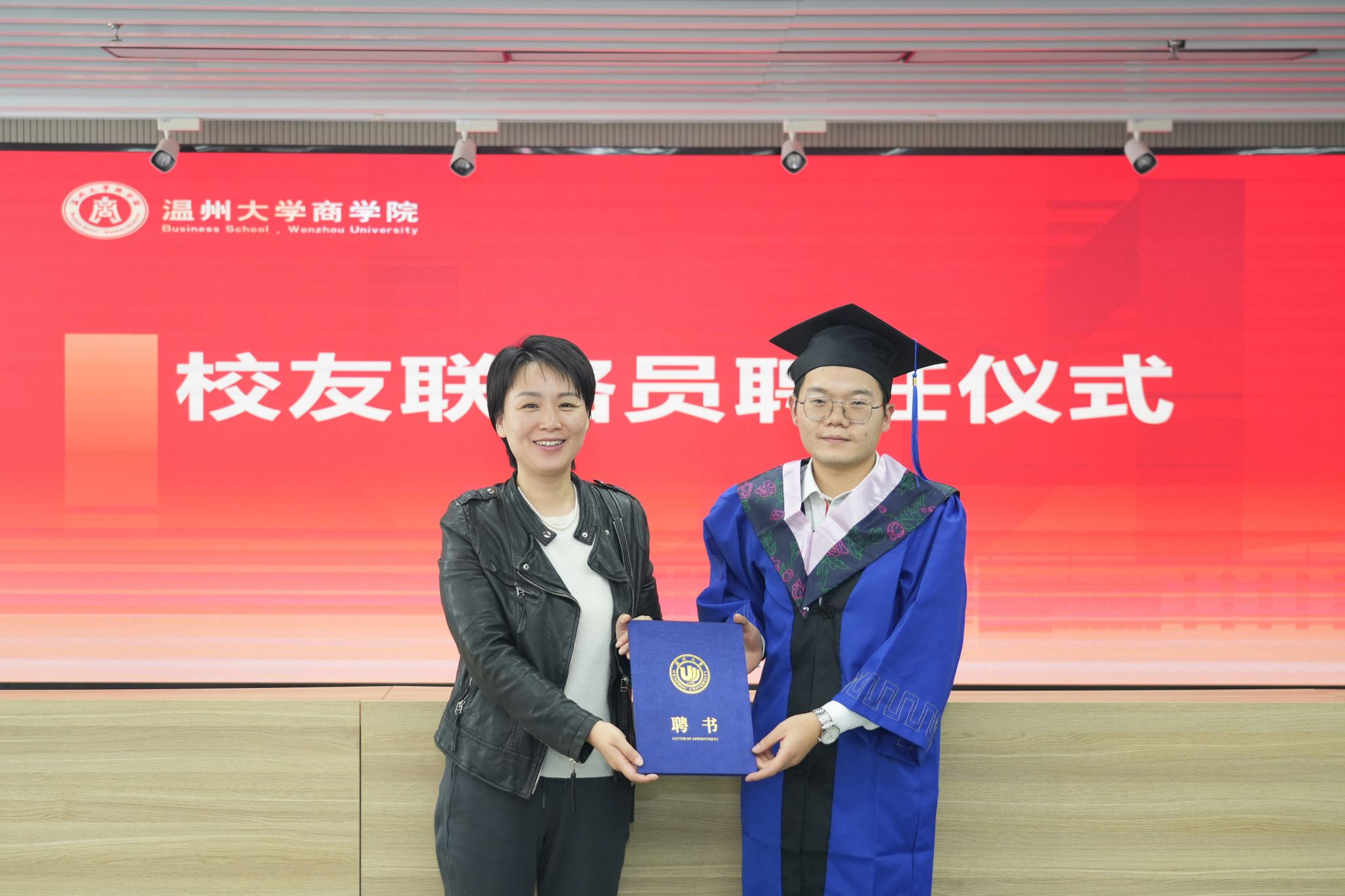 为进一步加强员工与母校、员工与员工之间的联络沟通,李秘书记特此为员工联络员王江南同学颁发聘书。聘书虽小,但承担了母校对全体员工的关切之情,希望员工联络员能够积极发挥作用,真正成为员工与母校、员工与员工之间的联络纽带。