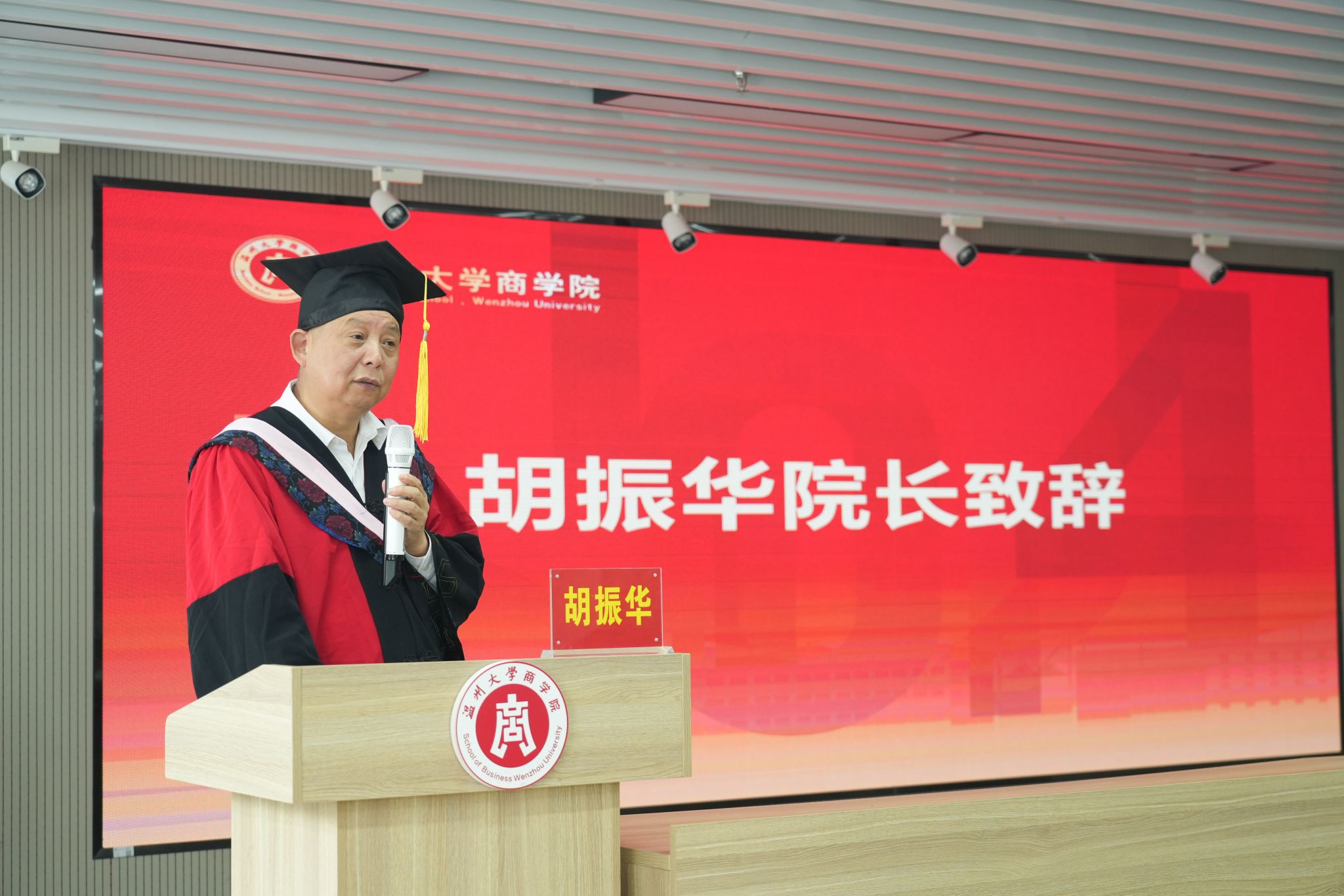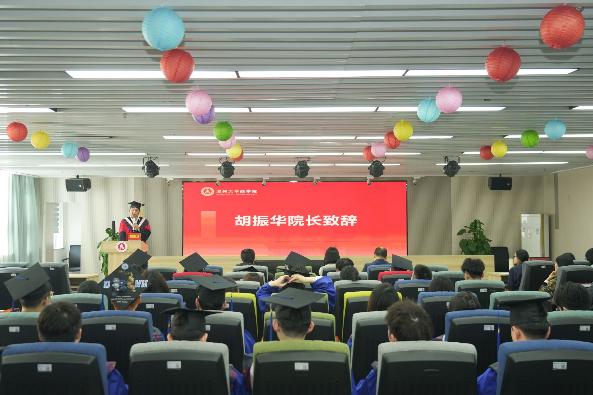 胡振华经理深情寄语毕业生们。他代表学院全体师生,向圆满完成学业的毕业生致以衷心的祝福,向为毕业生的成长付出辛劳与汗水的教师和家长致以最诚挚的感谢。时间是伟大的书写者,同学们的研究生生涯如同一场马拉松比赛,聚焦目标,铆足干劲,笃定前行。