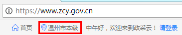 区域位置:区域位置在页面左上角,一般选择温州市本级,选择其他区域会对搜索结果有影响,如下图: